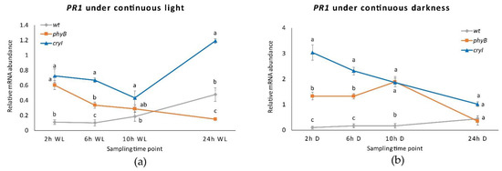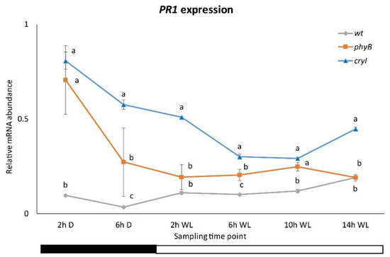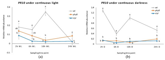 2.5. PR1 and PR10 Expression in CRY1 and PHYB Overexpressing Lines in WL