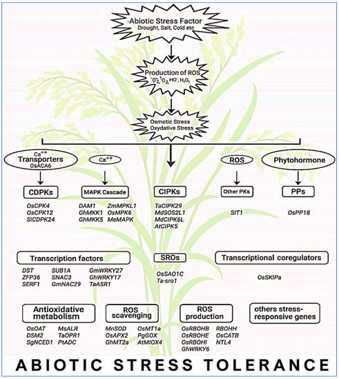 5. Involvement of Genes in the Regulation of ROS in Abiotic Stress Tolerance