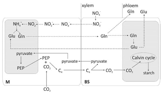 The cell-specific distribution of assimilated N in C4 plants has been well established (Figure 3) []; however, many questions remain open.