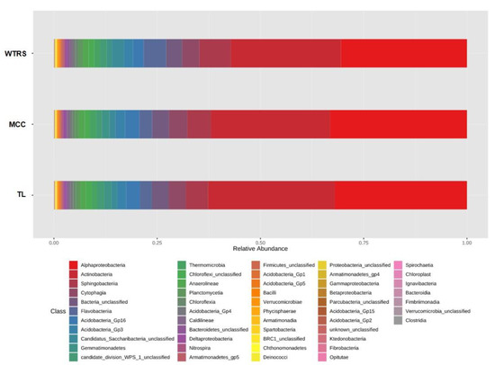 Relative abundance of bacteria of tomato rhizosphere soils. WTRS: wild tomato related species; TL: tomato landraces; MCC: modern commercial cultivars.