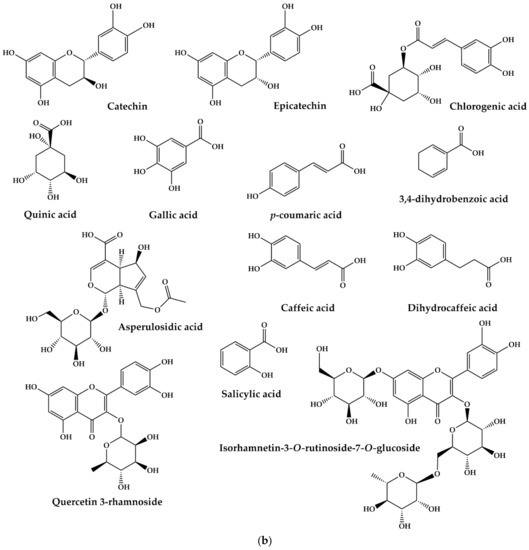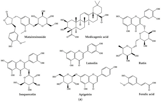 (a) Bioactive compounds found in Herniaria hirsuta L. extracts; (b) Bioactive compounds found in Herniaria hirsuta L. extracts.