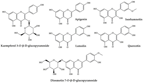 - Van Dooren, I.; Foubert, K.; Bijttebier, S.; Theunis, M.; Velichkova, S.; Claeys, M.; Pieters, L.; Exarchou, V.; Apers, S. Saponins and Flavonoids from an Infusion of Herniaria Hirsuta. Planta Med. 2016, 82, 1576–1583. [Google Scholar] [CrossRef] [PubMed]