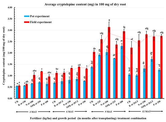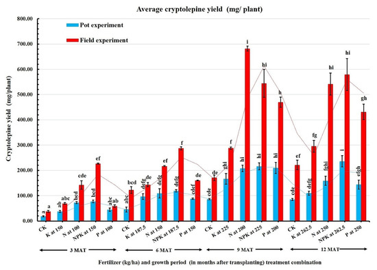 2.4. Effect of Treatment Combination (Fertilizers and Growth Periods) on Cryptolepine Yield