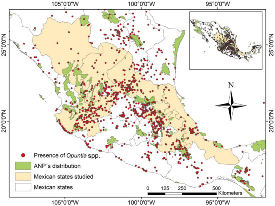 - Akcelrad Lerner, L. Comisión Nacional Para el Conocimiento y Uso de la Biodiversidad C. Especies Silvestres de Nopales Mexicanos. Version 1.9. Comisión Nacional Para el Conocimiento y Uso de la Biodiversidad. Occurrence Dataset. 2021. Available online: GBIF.org (accessed on 17 December 2021). [CrossRef]