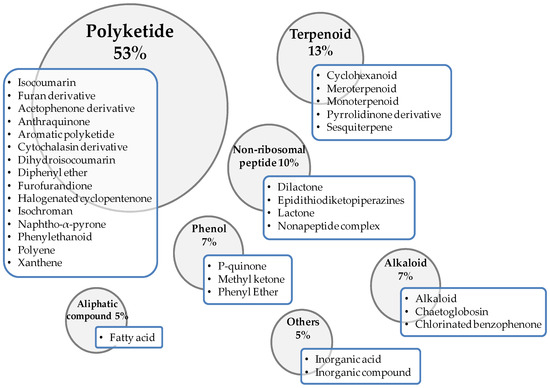 - Zheng, R.; Li, S.; Zhang, X.; Zhao, C. Biological activities of some new secondary metabolites isolated from endophytic fungi: A review study. Int. J. Mol. Sci. 2021, 22, 959. [Google Scholar] [CrossRef]