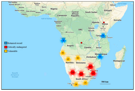 - Pooley, E. A Field Guide to Wild Flowers KwaZulu-Natal and the Eastern Region, 1st ed.; Natal Flora Publication Trust: Durban, South Africa, 2005. [Google Scholar]