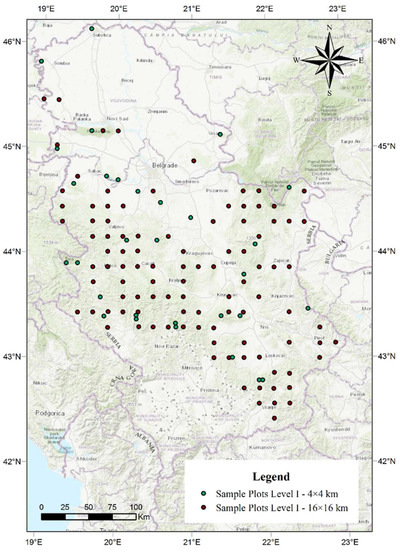 The spatial arrangement of sample plots in the territory of the Republic of Serbia.