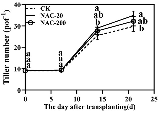 3.1. The Concentration of 20 μM NAC Priming Is More Effective in Promoting Tillering and Yield of Machine-Transplanted Rice under Transplanting Injury