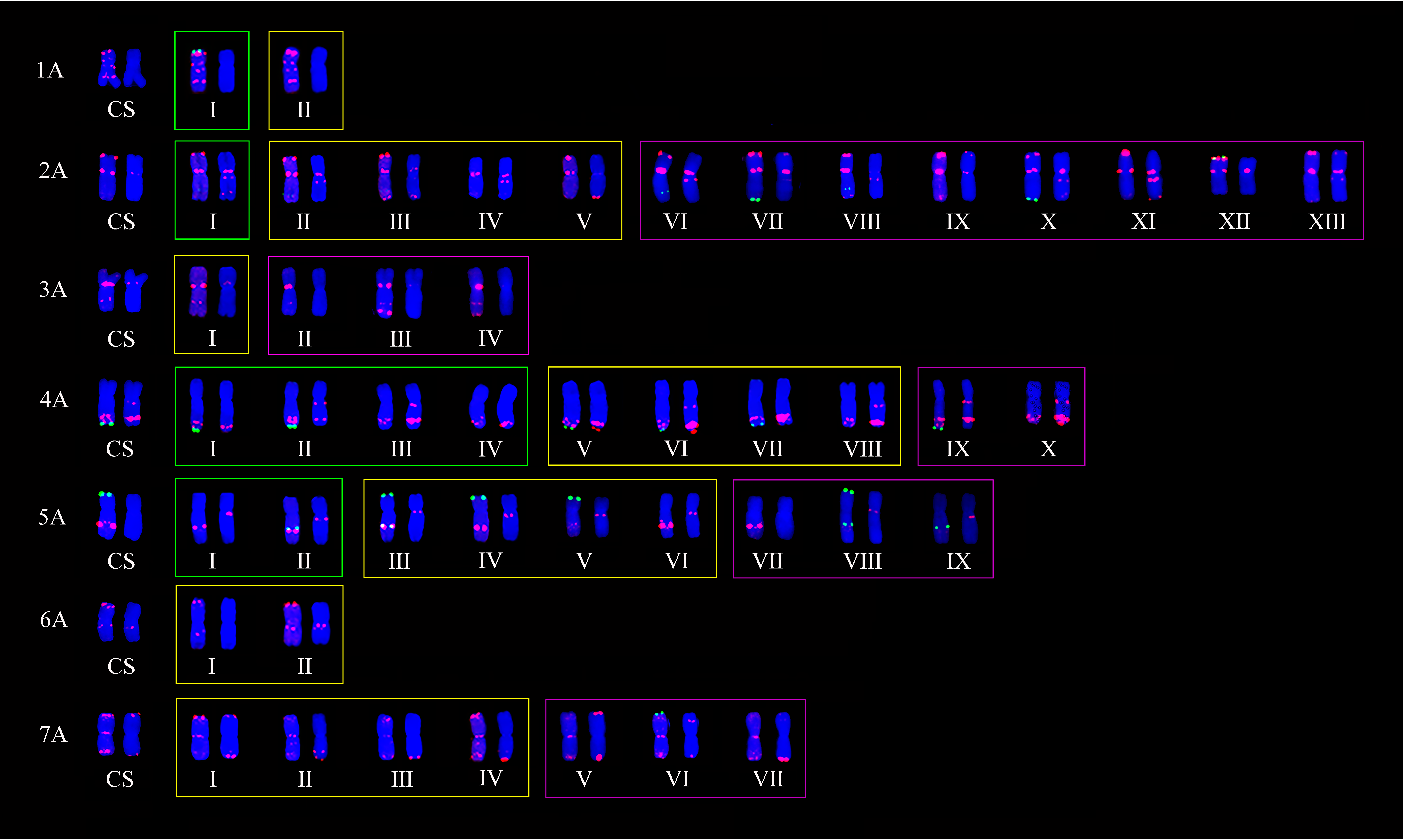 CACG34 | Neichan5 | breeding variety | 2n = 42 | CACG81 | Fengmai11 | breeding variety | 2n = 42 | ||