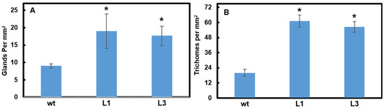 - Payne, T.; Clement, J.; Arnold, D.; Lloyd, A. Heterologous Myb Genes Distinct from GL1 Enhance Trichome Production When Overexpressed in Nicotiana Tabacum. Development 1999, 126, 671–682. [Google Scholar] [CrossRef] [PubMed]