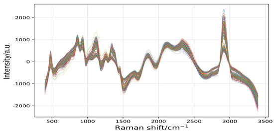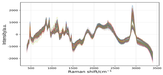 The spectral data of samples were collected using an Advantage 532 Desktop Raman spectrometer. Each spectrum was scanned with a resolution of 1.4 cm−1 over 200–3400 cm−1, and the spectral information of 245 samples was obtained with 4 scanning times. ProScope HR 2.3 software was used to obtain sample image information and sample data, which were saved in PRN format. The data processing software used was Python.