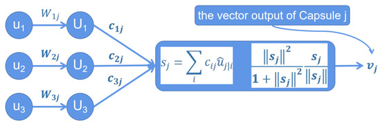Note: is the vector output of capsule j, and (Equation (3)) is the input vector of capsule j.