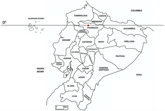 Ecuador (Figure 1), thanks to its high biodiversity, is included in the list of the 17 megadiverse world countries [6], all of which are partially or totally located between the tropics. Moreover, it is worthwhile to note that the surface of Ecuador is the smallest among the megadiverse countries, with around 258,000 km2, which correspond to only 0.02% of the earth’s surface. Regarding the number of native vascular plants growing in Ecuador, the Catalogue of the Vascular Plants of Ecuador, published in 1999, listed a total of 15,306 species, including 1298 pteridophytes, 17 gymnosperms, and 13,991 angiosperms [7]. Recently, the number of native taxa has been increased to 17,500 [8,9], of which from 4500 to 5500 are endemic [10,11]. However, it is estimated that, with the assessment of the studies on the Ecuadorian flora, the total number of vascular plants could reach 25,000 [11], which is just below 7% of the world’s known plants.