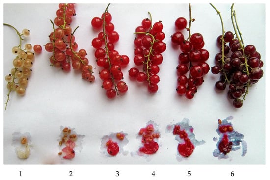 Red currant is a commercially important berry crop. Among other temperate climate crops, currant is relatively young. It has been cultivated for only 400–500 years. The first information about red currant appeared in Western Europe at the beginning of the 15th century in the explanatory dictionary of Dieffenbach, and in the 16th century it was widely used as a garden crop in Italy, France, and England []. The main red currant producers are Poland, Germany, Holland, Belgium, France, and Hungary. Germany and the Slovak Republic are leading producers of white currants [].