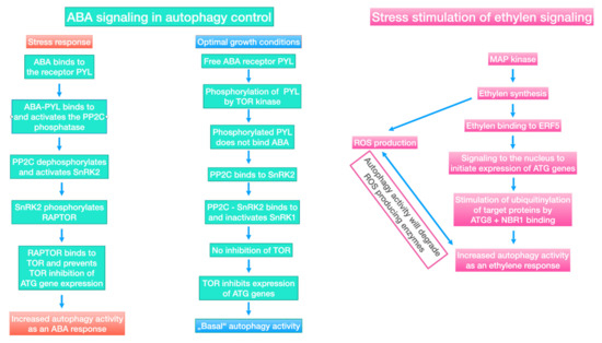As abovementioned, we have described ABA and ethylene effects as plant stress responses. In addition, we presented that plant growth promoting microorganisms produce ABA, while most of them prevent ethylene production. Moreover, we will continue to focus on these two examples and describe how these two messengers can control autophagy activity.