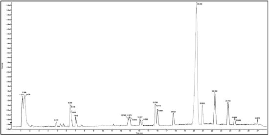 | 51 | 6.56 | 449.1086 | 447.0901 | Isoorientin (Luteolin-6-C-glucoside) | C21H20O11 | −3.3 | 431.0888, 359.0845, 329.0694, 287.0613, 251.1983 |