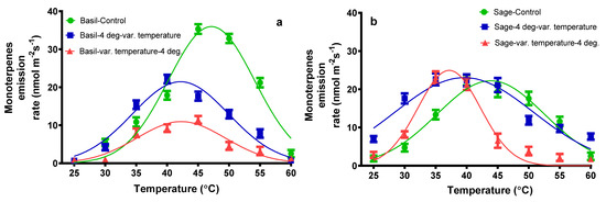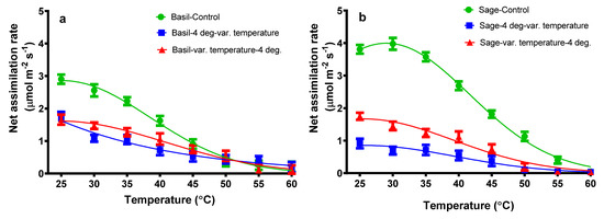 Copolovici, L.; Copolovici, D.M.; Moisa, C.; Lupitu, A. Antagonist Temperature Variation Affects the Photosynthetic Parameters and Secondary Metabolites of Ocimum basilicum L. and Salvia officinalis L. Plants 2022, 11, 1806. https://doi.org/10.3390/plants11141806