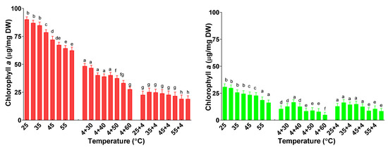 2.3. The Influence of the Variation of Temperatures on the Photosynthetic Pigments