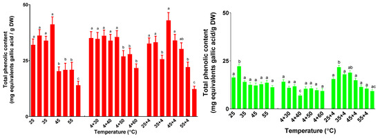2.4. The Influence of the Variation of Temperatures on the Total Phenolic Content—Folin−Ciocalteu Method