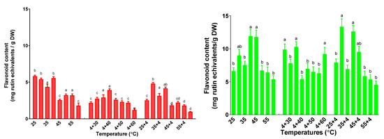 2.5. The Influence of the Variation of Temperatures on Total Flavonoid Content