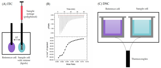 - Virtanen, V.; Green, R.J.; Karonen, M. Interactions between hydrolysable tannins and lipid vesicles from Escherichia coli with isothermal titration calorimetry. Molecules 2022, 27, 3204. [Google Scholar] [CrossRef]
