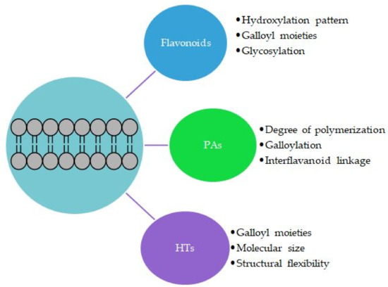 - Zhu, W.; Xiong, L.; Peng, J.; Deng, X.; Gao, J.; Li, C. Molecular insight into affinities of gallated and nongallated proanthocyanidins dimers to lipid bilayers. Sci. Rep. 2016, 6, 37680. [Google Scholar] [CrossRef]