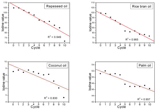 2.2. Heating–Time Dependence of the Iodine Values
