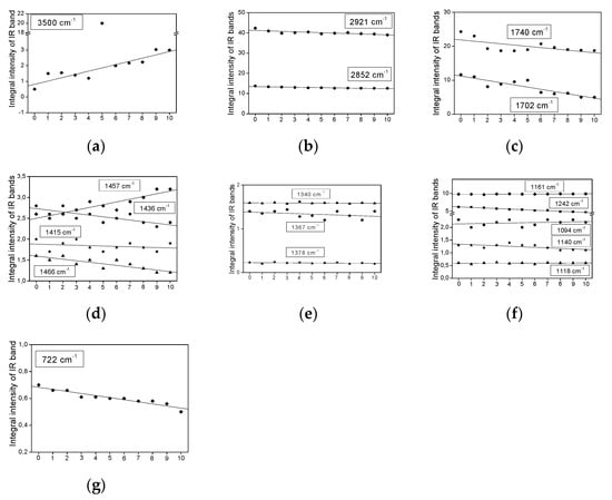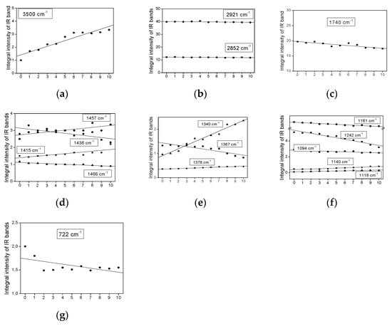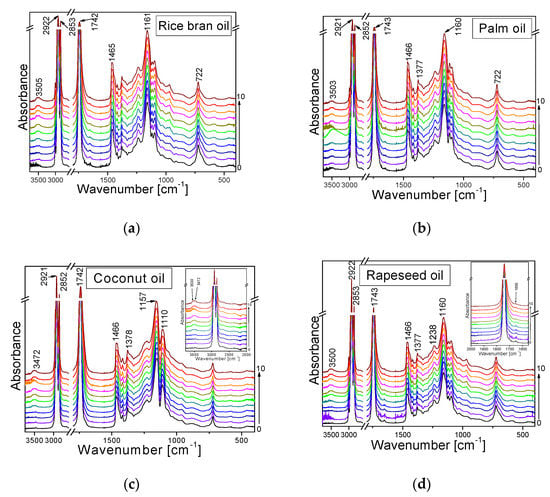 - Guillén, M.D.; Cabo, N. Some of the most significant changes in the Fourier transform infrared spectra of edible oils under oxidative conditions. J. Sci. Food Agric. 2000, 80, 2028–2036. [Google Scholar] [CrossRef]