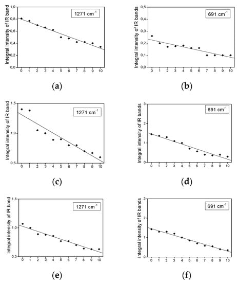 - Moya Moreno, M.C.; Mendoza Olivares, D.; Amézquita López, F.J.; Gimeno Adelantado, J.V.; Bosch Reig, F. Analytical evaluation of polyunsaturated fatty acids degradation during thermal oxidation of edible oils by Fourier transform infrared spectroscopy. Talanta 1999, 50, 269–275. [Google Scholar] [CrossRef]