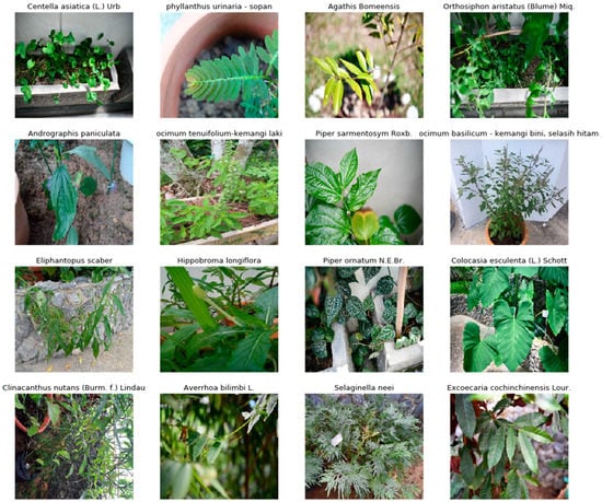The dataset consists of 106 species with a total of 2097 images collected by us (Table 2). Plants’ images were captured from different angles, and instances of plants with a variety of growth conditions were collected. Images are mostly concentrated on the leaf, with only a small fraction of the dataset containing flowers. Examples of images taken from the dataset are illustrated in Figure 2.