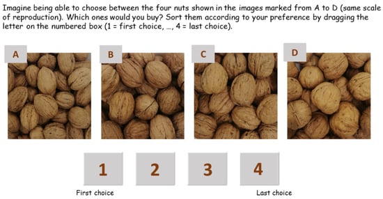 Even for the visual preference, the four varieties are statistically different (H (3, 752) = 150,073 p < 0.0001). ‘Blegette’ and ‘Chandler’, the medium-sized walnut varieties, are chosen more frequently as the first, while ‘Bleggiana’ (the smallest) and ‘Lara’ (the largest) are less appreciated in that order. This result demonstrates how the Italian consumer seems to disagree with considering the walnut size a first quality requirement that drives the value at the sale: ‘large walnut higher price’ as reported by Mc Neil et al. [75].