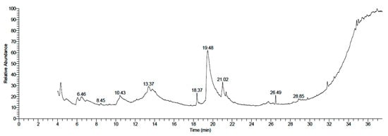On the other hand, 18 components were found in the fruit epicarp extract, as shown in Table 3 and Figure 2, in which d-Manno-l-gluco-octonic acid was the predominant component (43.64%). The other prevailing compounds included 4h-pyran-4-one, 2,3-dihydro-3,5-dihydroxy-6-methyl- (8.07%), Ethyl iso-allocholate (7.23%), Docosanoic acid, 1,2,3-propanetriyl ester (7.13%), Desulfosinigrin (6.04%), Oleic acid (5.86%), and Octadecanoic acid, 3-hydroxy-, methyl ester (4.80).