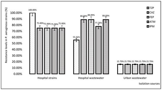 The antibiotic resistance levels (%) of P. aeruginosa strains depending on their isolation sources.