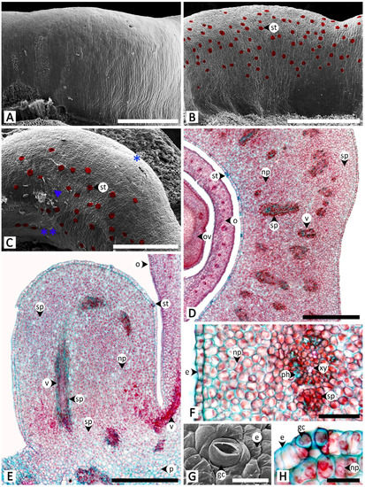 - Nepi, M. Nectary structure and ultrastructure. In Nectaries and Nectar; Nicolson, S.W., Nepi, M., Pacini, E., Eds.; Springer: Dordrecht, The Netherlands, 2007; pp. 129–166. [Google Scholar]