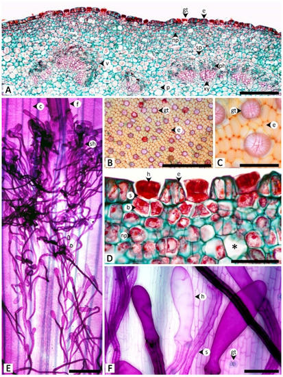 - Evert, R.F. Esau’s Plant Anatomy: Meristems, Cells, and Tissues of the Plant Body: Their Structure, Function, and Development; John Wiley & Sons: New Jersey, NY, USA, 2006. [Google Scholar]