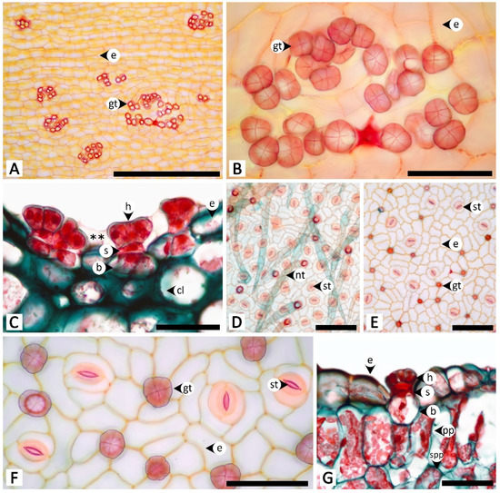 - Werker, E. Trichome diversity and development. In Advances in Botanical Research; Academic Press: New York, NY, USA, 2000; Volume 31, pp. 1–35. [Google Scholar]