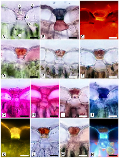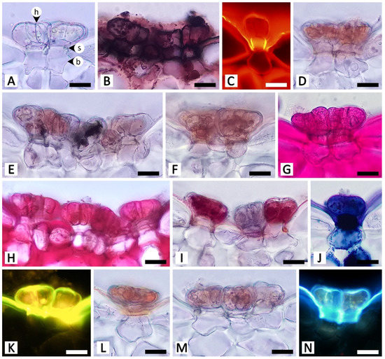 - Machado, S.R.; Rodrigues, T.M. Apoplasmic barrier in the extrafloral nectary of Citharexylum myrianthum (Verbenaceae). Planta 2021, 254, 19. [Google Scholar] [CrossRef]