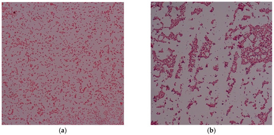 (a) Bacteria M1, negative bacteria and (b) bacteria M2, positive bacteria. Both bacteria were isolated from the mouth.