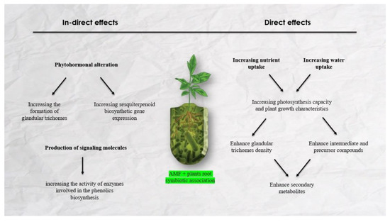 Generally, AMF symbiotic associations with host plant roots can affect plants’ secondary metabolites through two different ways (Figure 1):