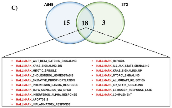 RNAseq libraries of untreated and treated samples were prepared using Truseq Stranded mRNA Prep Kit (Illumina) according to the manufacturer’s protocol. RNAseq libraries were sequenced by Illumina Hiseq 2500 platform. The generated raw reads underwent quality control checking procedures that included the removal of adapter sequences and low-quality reads. Evaluation of the quality of reads of each sample based on Phred quality score [83] has been done by using FASTQC [84] (version 1.1.9, http://www.bioinformatics.babraham.ac.uk/projects/fastqc/, accessed on 20 August 2022) software. Further, obtained high-quality reads were aligned against the human genome (build hg38) using the fast and sensitive alignment program HISAT2 [85] (http://daehwankimlab.github.io/hisat2/, accessed on 20 August 2022) with default parameters. The number of reads per gene was measured using featureCounts software [86] (version 1.22.2, the Australian National Health and Medical Research Council (NHMRC), Victorian State Government Operational Infrastructure Support and Australian Government NHMRC IRIIS).