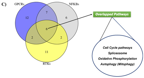 To further enhance our understanding of the potential biological activities of the extract, we have utilized information from the connectivity map (CMAP). Originally, CMAP was built to compare drug-specific gene expression profiles using a reference database. The algorithm used to build the CMAP is entirely different from that used in GSEA, and therefore integrating the CMAP will enhance the validity of GSEA analysis of the transcriptomic changes (Figure 2A). First, we compared the transcriptome signature of SSRE treatment with drug-induced signatures in CMAP. Ten top hits with the highest scores were compounds that belong to three pathways, including RTKs, NFkB pathway, and GPCRs (Figure 2B). By extracting the gene expression data of these top hit compounds in the CMAP database, we performed pathway analysis and compared the results of enriched pathways of compounds to our dataset. Interestingly, there was a clear overlapping of certain pathways, including spliceosome, cell cycle, oxidative-phosphorylation, and autophagy pathways that were commonly found in all three groups of compounds and our RNA-seq analysis (Figure 2C) (Supplementary Table S4). Since the CMAP database contains approximately a million gene expression signatures from the treatment of a variety of cell types with perturbagens, thus overlap of these pathways empowers the idea of finding the actual biological activities of the medicinal plant extract via transcriptomic analysis.
