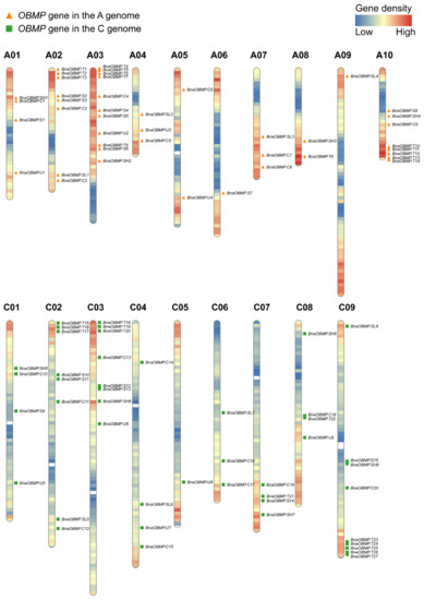 2.1. Identification, Properties and Genomic Distributions of BnaOBMP Genes
