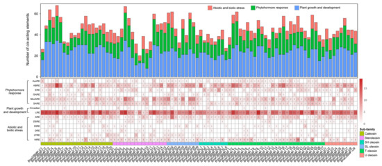 4.3. Cis-Acting Regulatory Elements and Motif Analysis