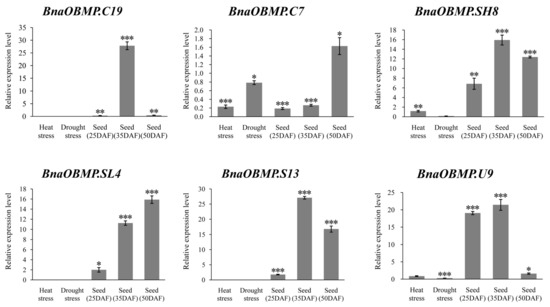 4.8. Expression Analysis of BnaOBMP Genes