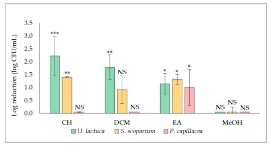 4.4. Checking the Potential Bactericidal Activity of the Selected Extracts