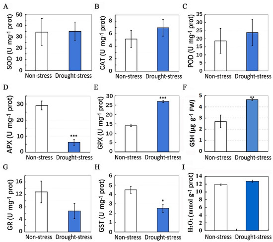 2.4. Enzymatic Activity of GPX Was Increased in the Mulberry under Drought Stress