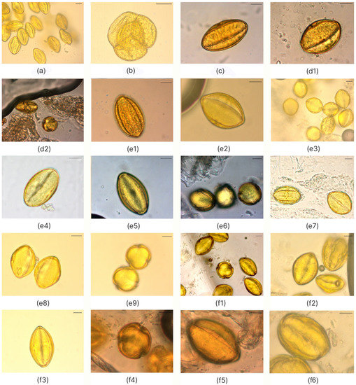 Therefore, the use of additional sources of information, such as micromorphological characters, may help taxonomists to better delineate species boundaries within the genus. Palynomorphological data are thought to be some of the important parameters for the identification of various problematic taxa. Polarity, shape, size, aperture structure, symmetry, and ornamentation of pollen grains are highly conserved traits and are often utilized to solve complex problems of plant taxonomy [21,22,23,24,25,26].