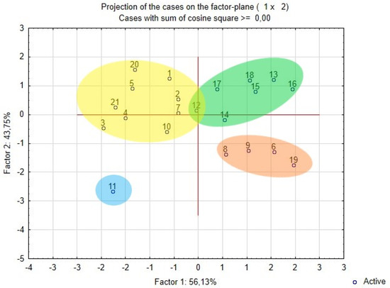 Genotypes were clustered into similarity groups by PCA. All statistical analyses were performed in the STATISTICA 6.0 software (TIBCO Software Inc., Palo Alto, CA, USA).
