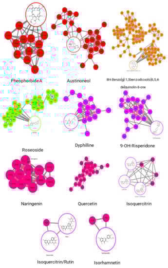 - Nothias, L.-F.; Petras, D.; Schmid, R.; Dührkop, K.; Rainer, J.; Sarvepalli, A.; Protsyuk, I.; Ernst, M.; Tsugawa, H.; Fleischauer, M.; et al. Feature-Based Molecular Networking in the GNPS Analysis Environment. Nat. Methods 2020, 17, 905–908. [Google Scholar] [CrossRef]