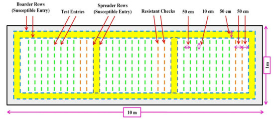 Schematic representation of Uniform Blast Nursery for screening of rice genotypes for blast disease.
